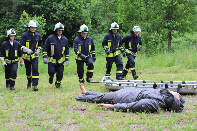 Insgesamt 26 Mannschaften mussten an zehn Stationen neben Ihrem Feuerwehrwissen auch praktische Übungen absolvieren, so in Erster Hilfe und Verletztentransport, aber auch heimatliche Fragen um und über Hartmannsdorf galt es zu beantworten.
