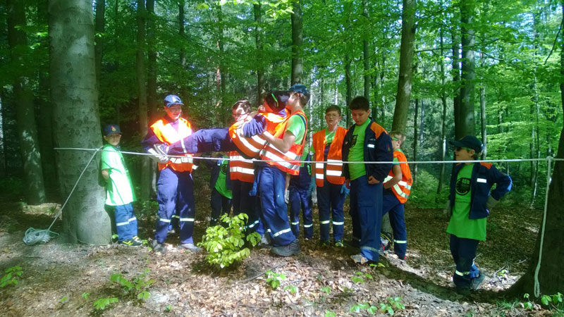 Abseits des Straßenverkehrs konnte mit Teamspielen das gemeinsame Arbeiten und das Gruppenverständnis geübt werden. Dabei gilt es den Jugendlichen zu vermitteln, dass die Fähigkeiten des Einzelnen wichtig sind, die Feuerwehrgruppe aber nur als Ganzes funktioniert. Auch die Notwendigkeit auf Anweisungen und Befehle eines einzelnen zu reagieren, wurde anschaulich verdeutlicht.
