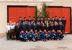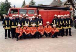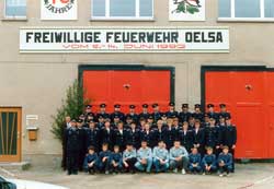 Das Bild zeigt die Freiwillige Feuerwehr Oelsa zusammen mit der Jugendfeuerwehr 1992.